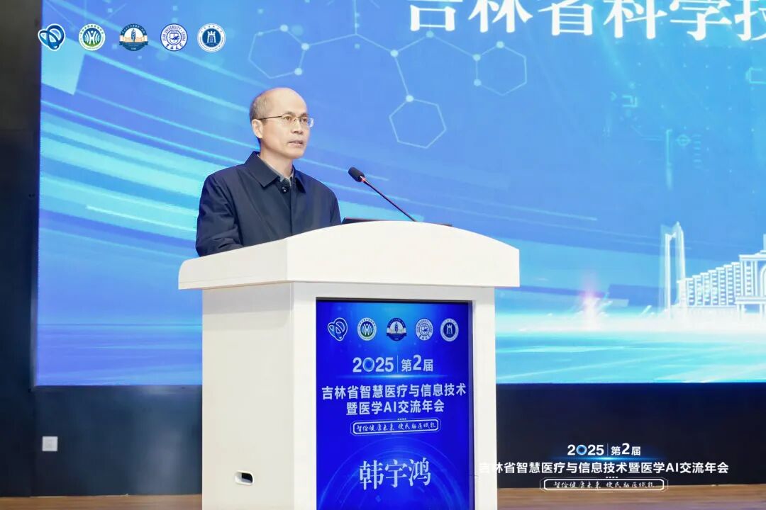 吉林省科学技术协会党组成员、副主席韩宇鸿发表了高瞻远瞩的讲话。“希望大家以本次年会为契机,畅所欲言,深入交流,把先进理念带进来,把优质资源引进来,把合作项目落下来,共同推动我省智慧医疗事业迈上新台阶。”