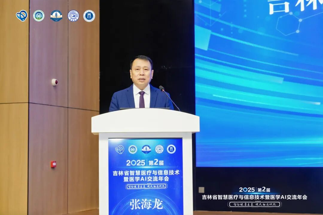 在领导致辞环节,吉林大学中日联谊医院党委副书记李旭东首先代表承办方致欢迎辞,并提出期望:“做厚‘创新土壤’,推动更多AI科研成果在临床场景中落地应用;打通‘应用链条’,消除信息孤岛,让数据发挥更大效能;建强‘人才梯队’,培养更多既懂医学又懂数据的复合型人才。一起推动吉林的智慧医疗事业走出新步伐、迈上新高度。”